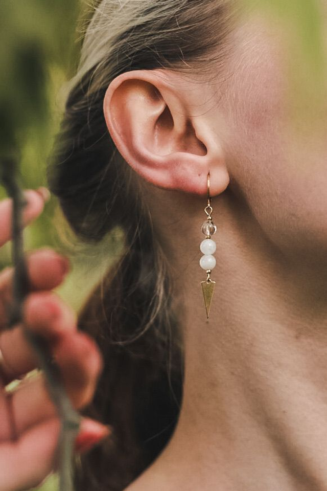 Ces boucles d’oreilles, sertie de Péristérite, apporte confiance en soi, sérénité et intuition. Elle est accompagnée de cristal de roche sur les boucles d'oreilles.